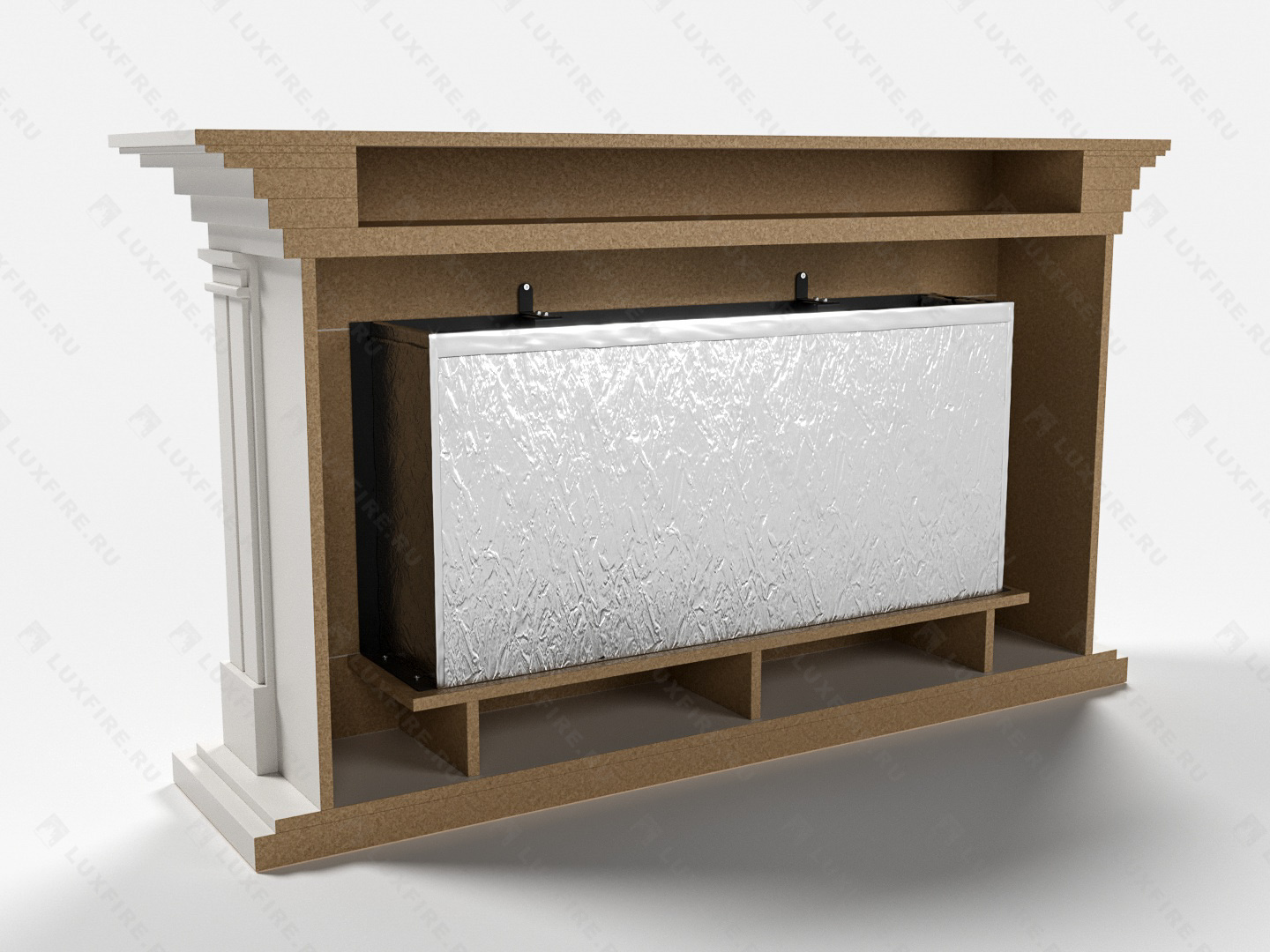 Представляет собой сборную окрашенную конструкцию из МДФ c портальным биокамином Lux Fire "Фаер Бокс 1-42"